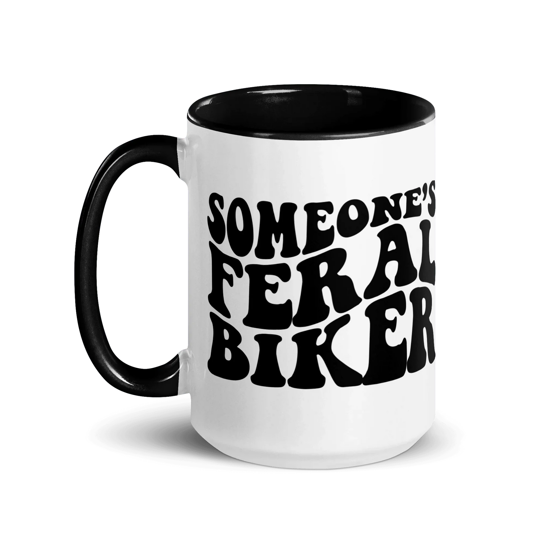 Feral Bikers need coffee (or tea) too. Black handle and interior ceramic mug in 11oz or 15oz depending on your level of feral!