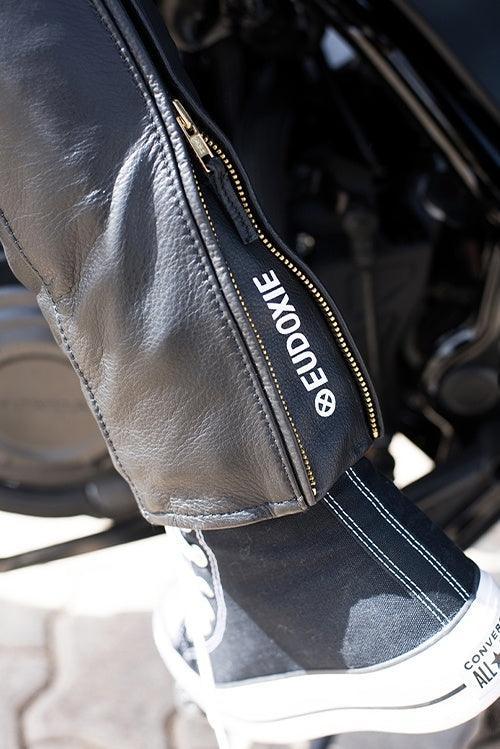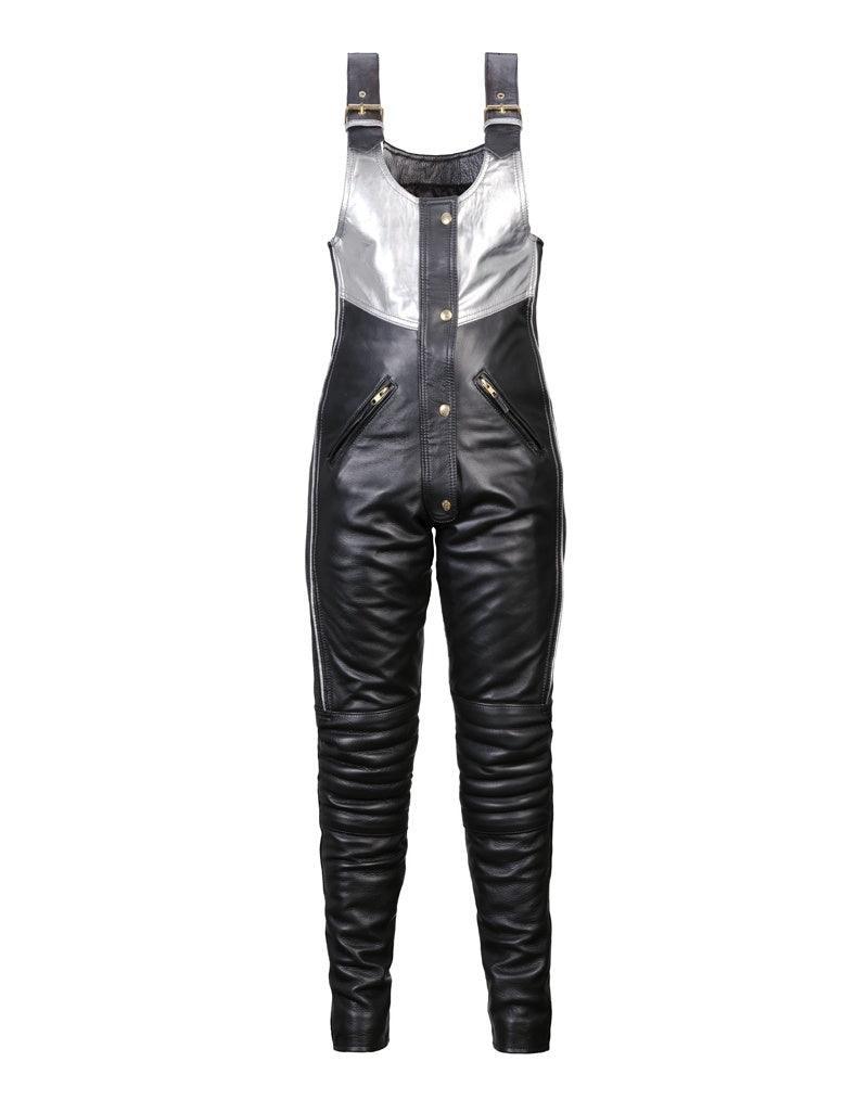 The smocked yoke is integrated into the knees and sides of the suit by pleating the leather in several rows that can be either fixed or elasticated. The quilted lining is also made of satin for extra softness and comfort once worn. Plus, the integrated zippered gussets on the back of each leg (ideal for putting on your motorbike boots or trainers!) make it easier to put on!