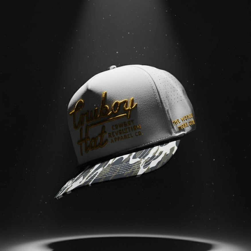 Introducing the Atakapa Flatline - NOLA White “Cowboy Hat” - Performance Patch Rope Hat, a clean fusion of sharp modern style and the unbreakable heartbeat of New Orleans. Built from premium poly/spandex, it moves with you—lightweight, breathable, and tough enough to handle second lines, swamp heat, or whatever the day demands.