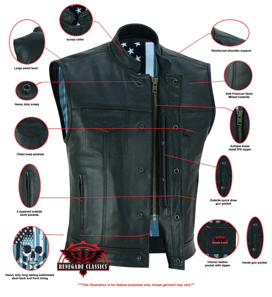 Black Rune Private Men's Black Leather Motorcycle Vest