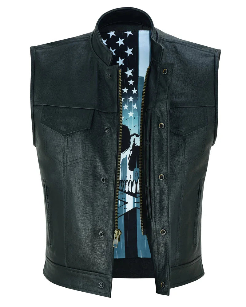 Men's Zipper Front Black Leather Motorcycle Vest
