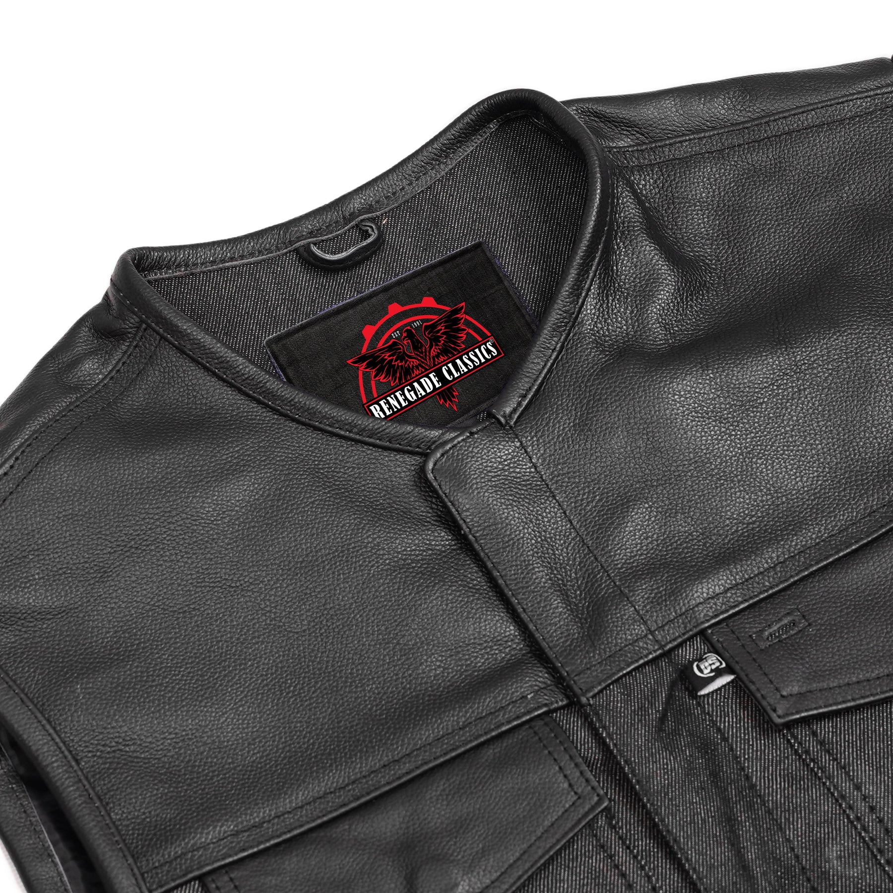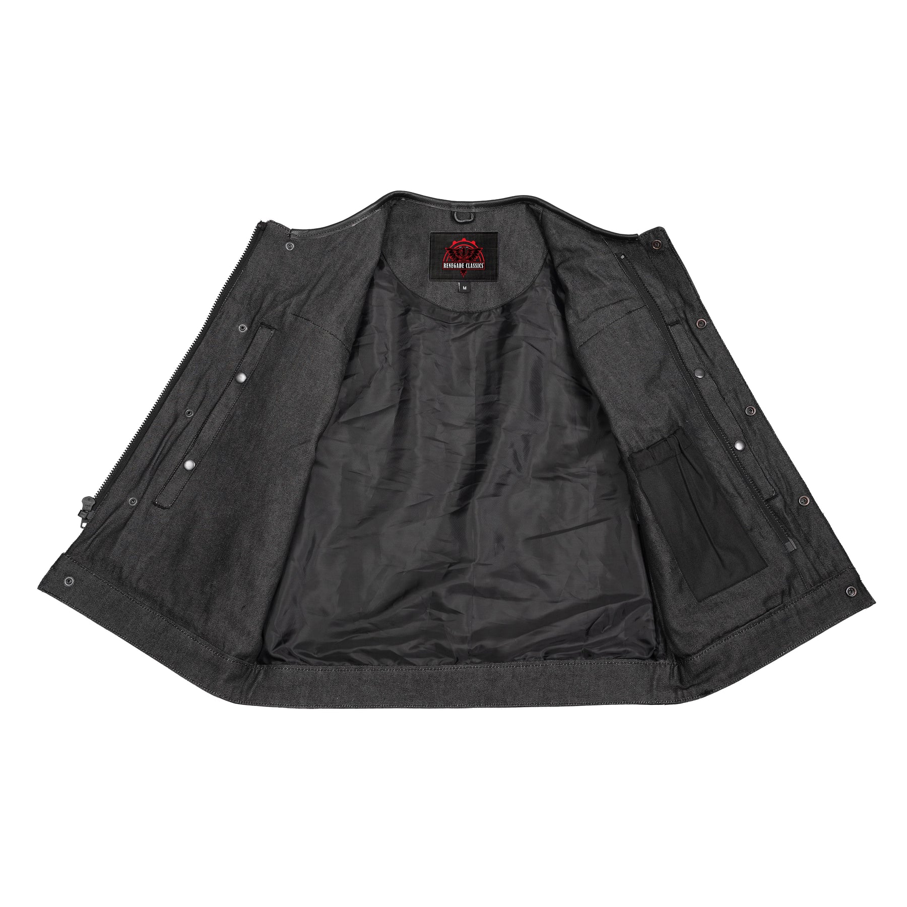 Blackfusion Men's Leather-Denim Combo Motorcycle Vest