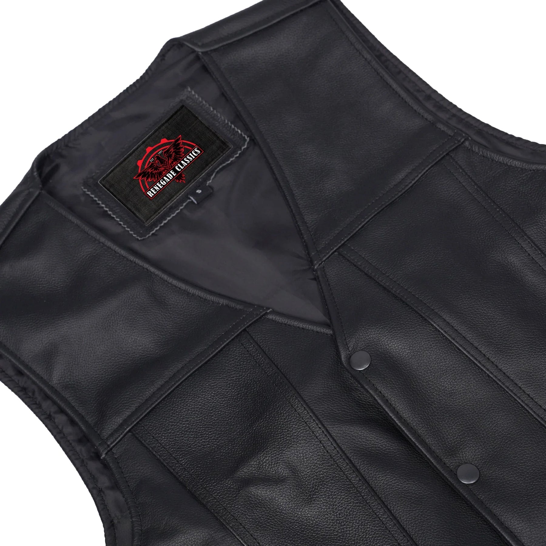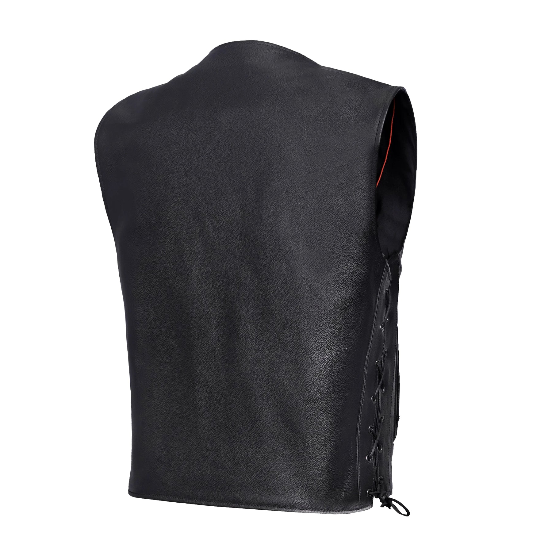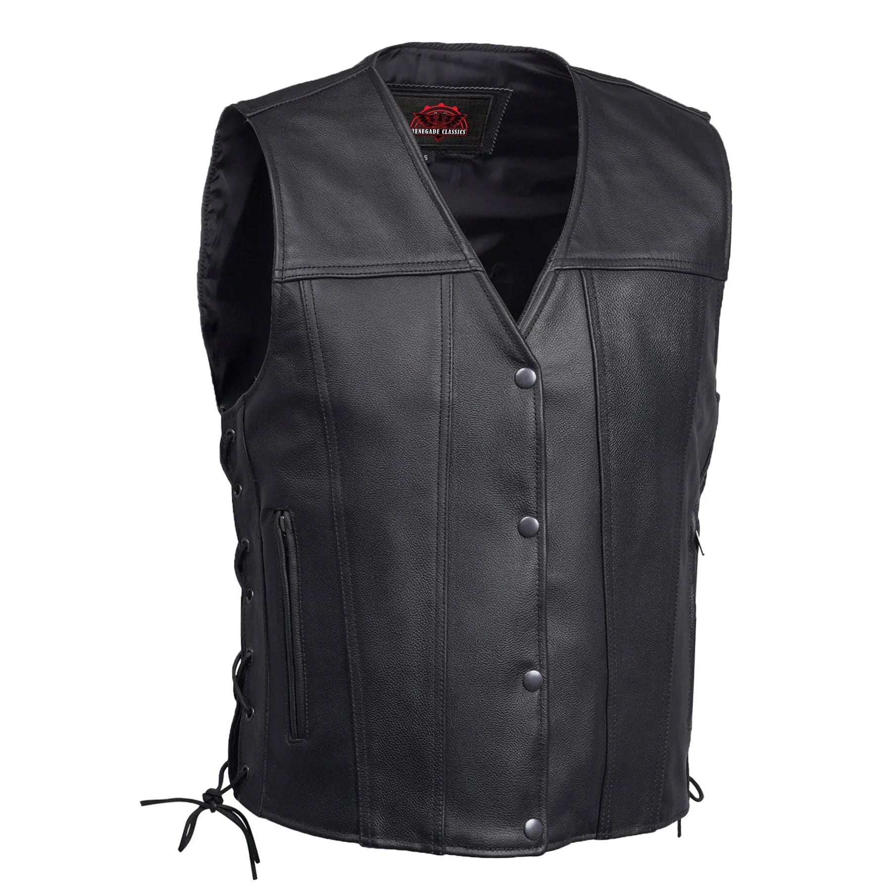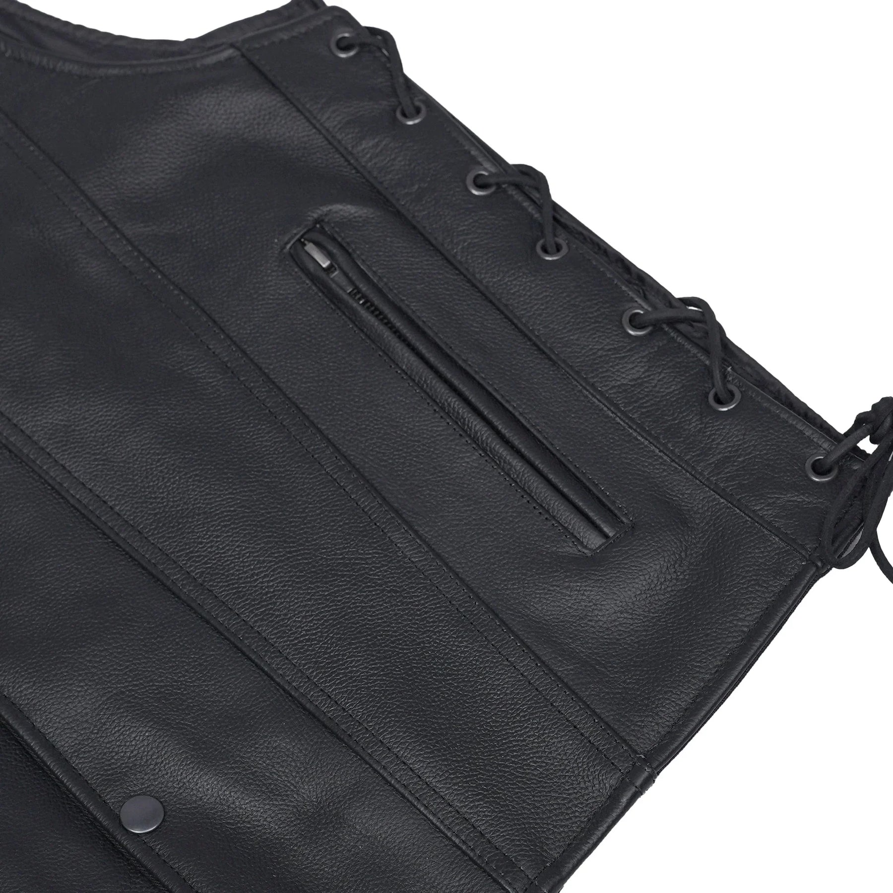 Clubster Men's Black Milled Cowhide Side Lace Motorcycle Leather Vest