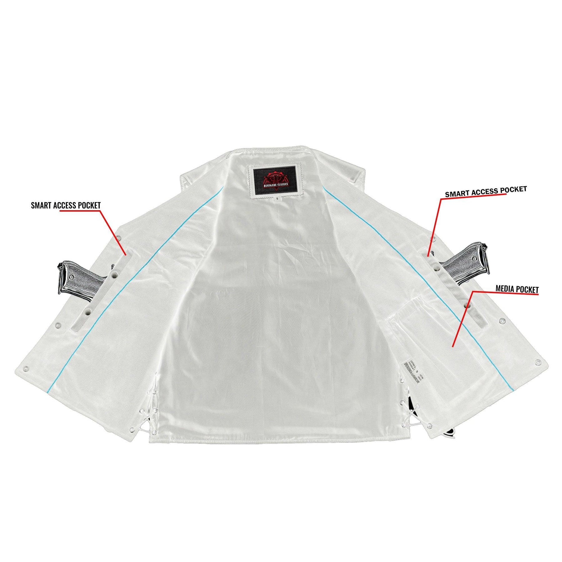 Adjustable leather vests are an essential part of any biker's wardrobe. Vests provide the ideal balance between comfort and protection. Our men's side lace concealed carry biker vest lets you feel secure on the road.