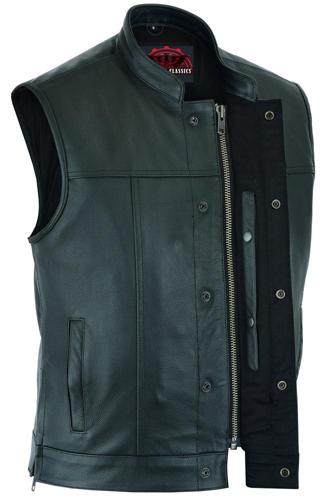 If you want a classic leather vest, our men's double-crosser biker vest with side zippers is an excellent choice.