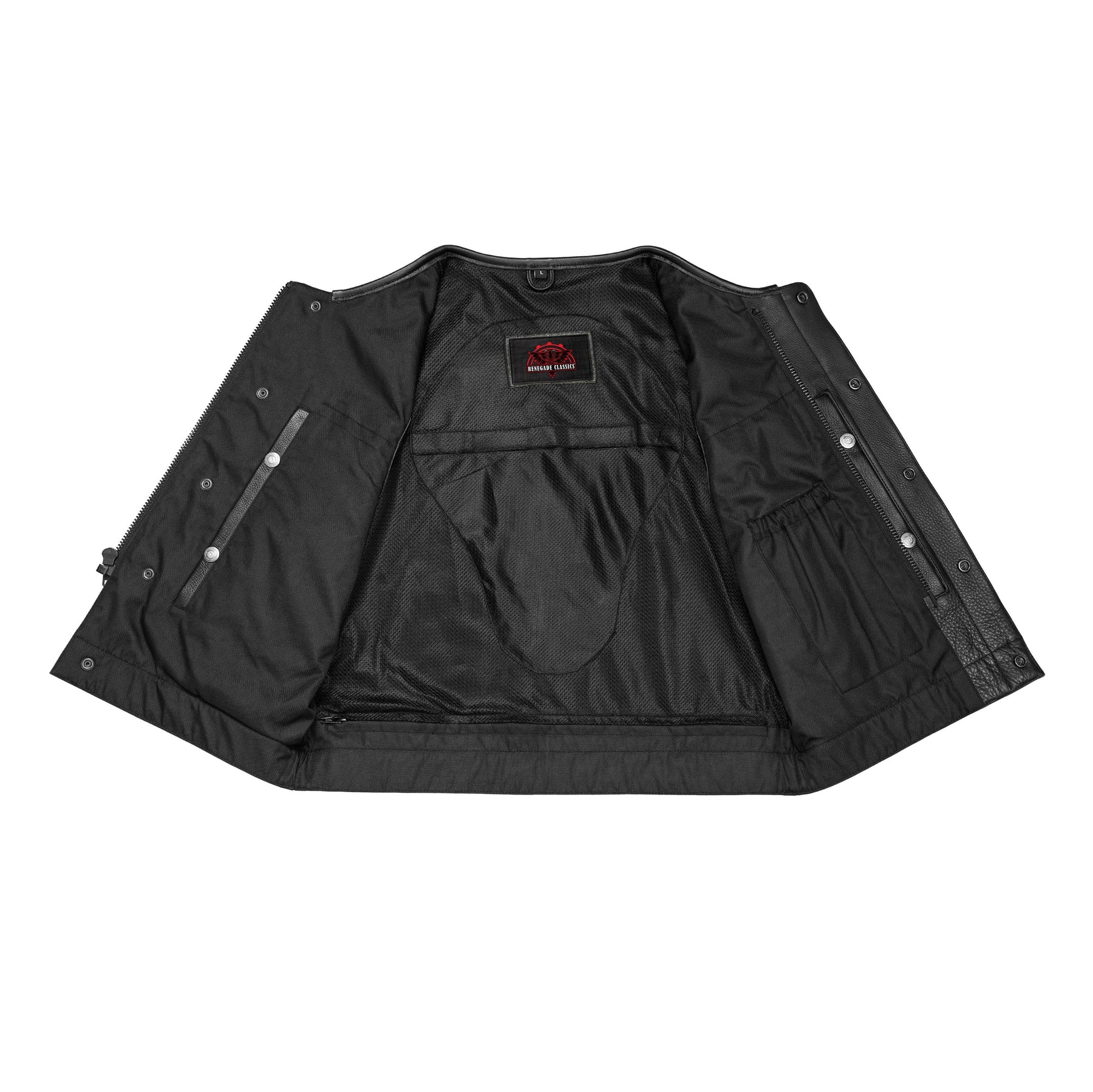 2 upgraded style concealed gun pockets between the snap and the zipper made of special heavy-duty textile with built-in holsters and snap closure.