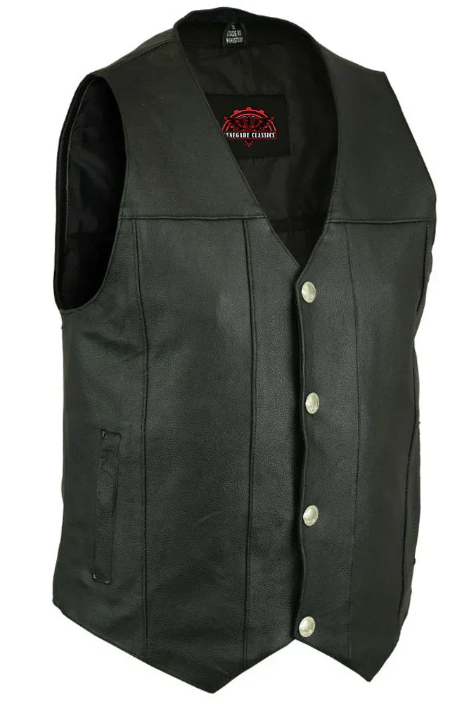 Leather vests offer increased mobility and protection while you're on the road. Concealed carry vests provide the advantage of accessible gun pockets and holsters. Our men's plain side single back panel concealed carry biker vest is the perfect addition to any wardrobe.