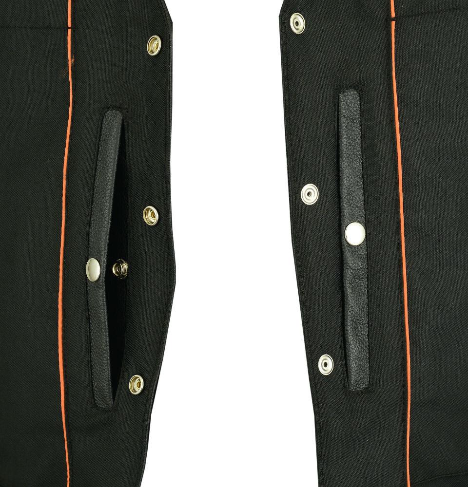 There are two hand pockets and two concealed carry pockets located in the front chest area. They have built-in holsters and snap closures for secure holding and easy access. We also reinforce the shoulders for maximum support.