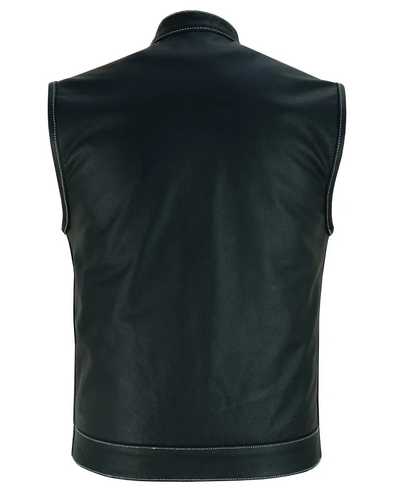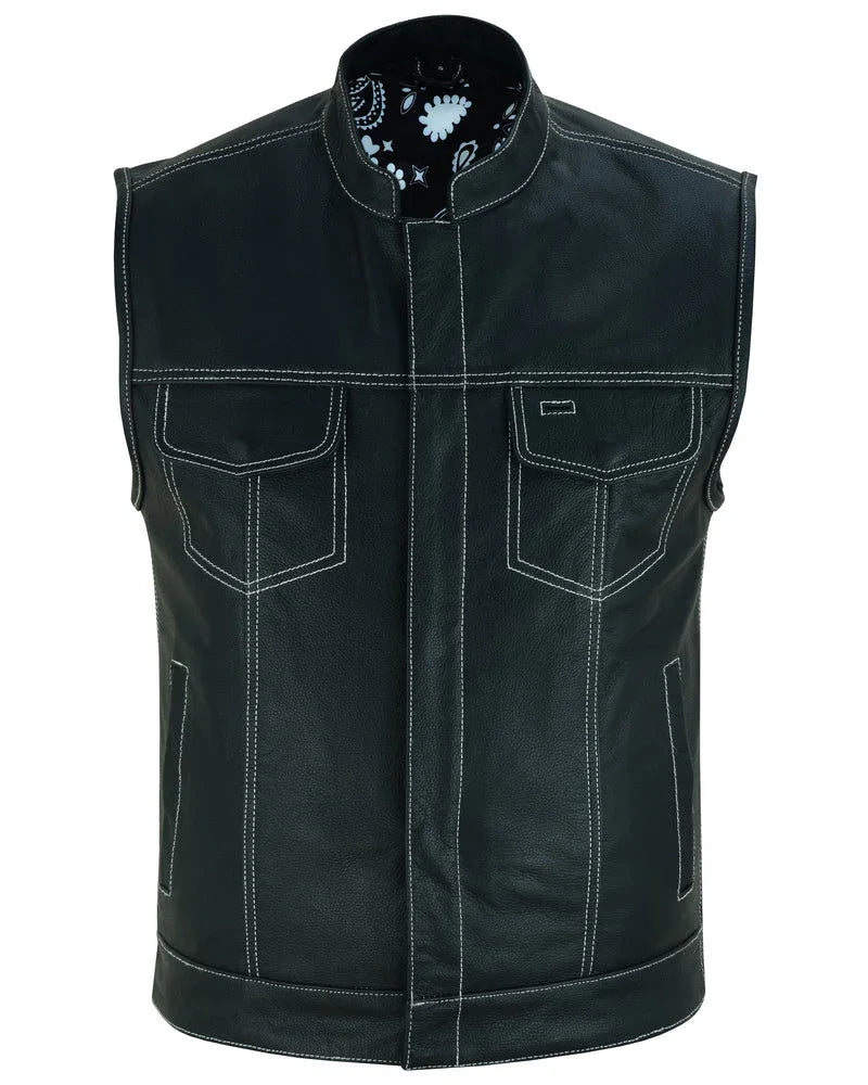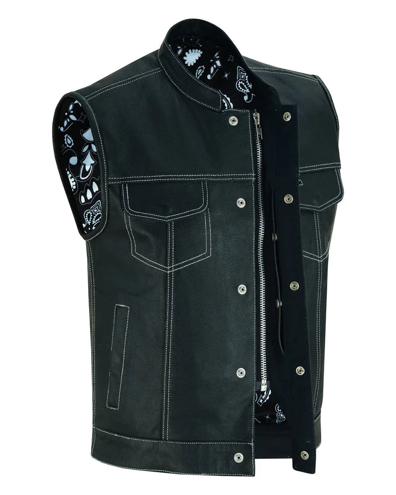 TonUp Men's Paisley Black Leather Motorcycle Vest