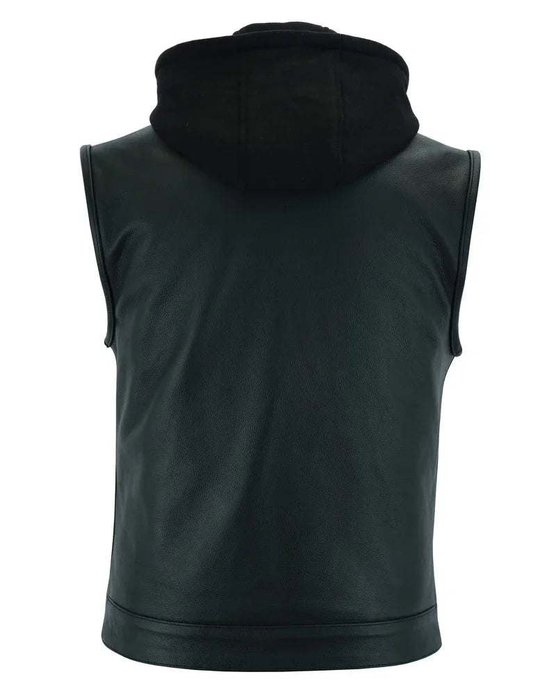 Vests are designed to keep you comfortable in all seasons, whether you're layering with a leather jacket or wearing it alone. Our men's single panel concealment motorcycle vest with a removable hood is ideal for all weather.