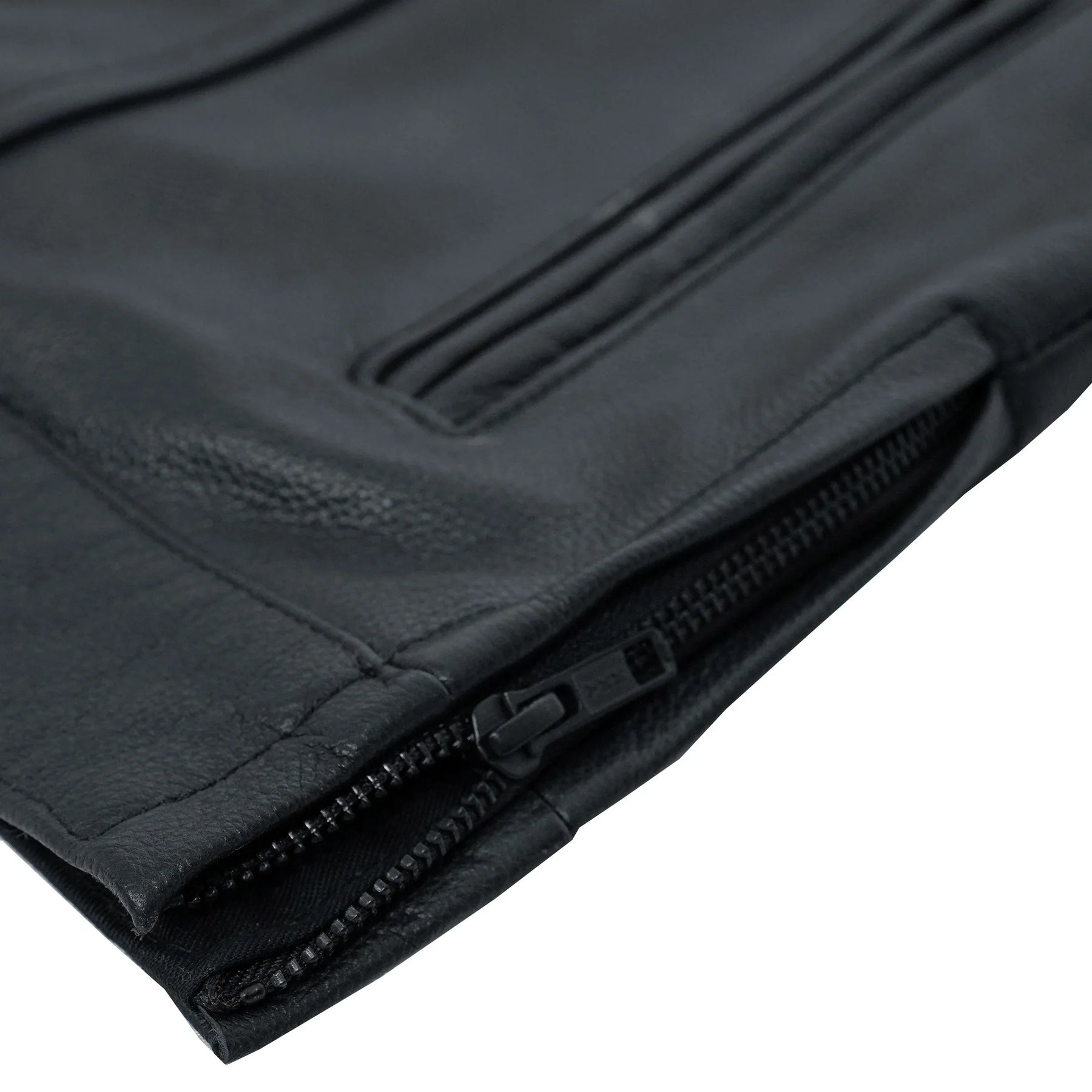 Men's Zipper Front Black Leather Motorcycle Vest