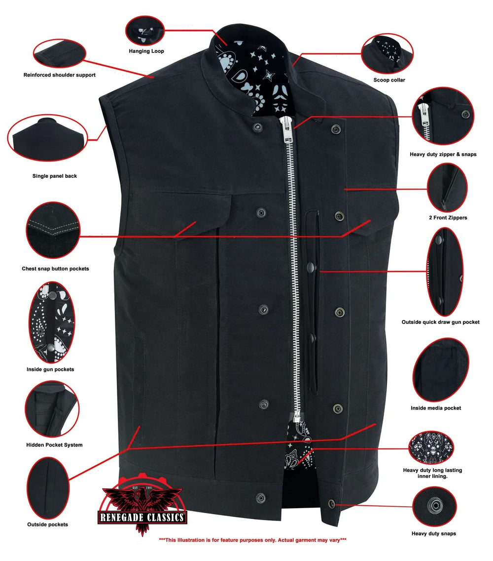 TonUp Men's Paisley Black Leather Motorcycle Vest