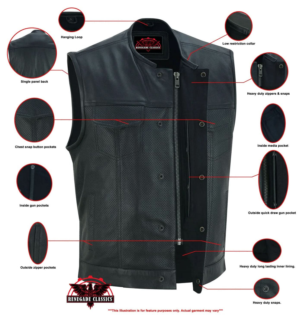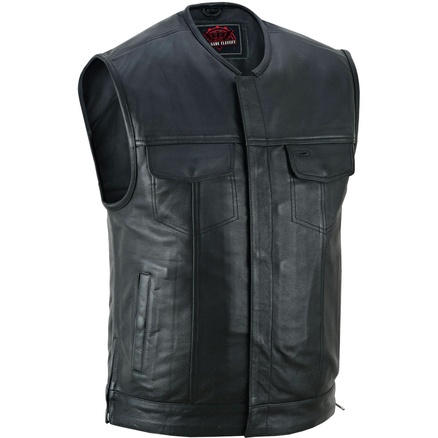 Wild Nickel Men's Leather Motorcycle Vest - Black