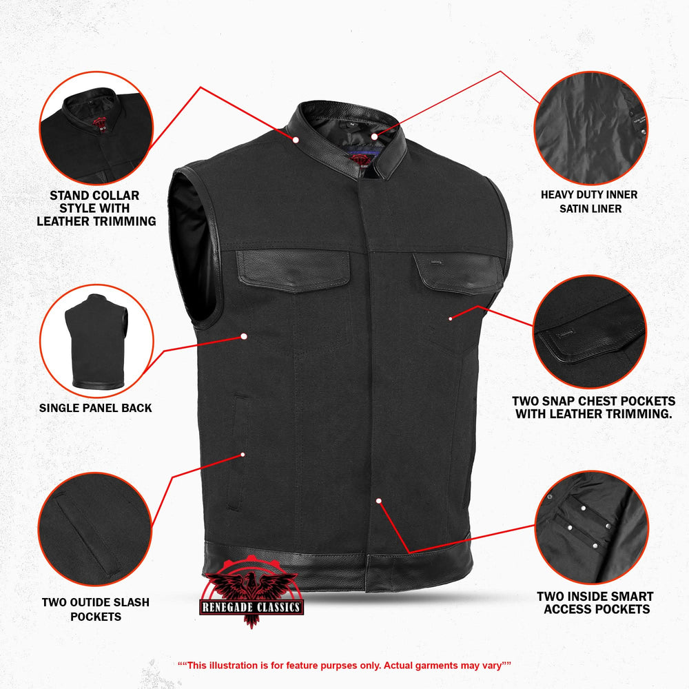 Edgeway Men's Leather & Denim Combo Motorcycle Vest (Black/Ash Gray)