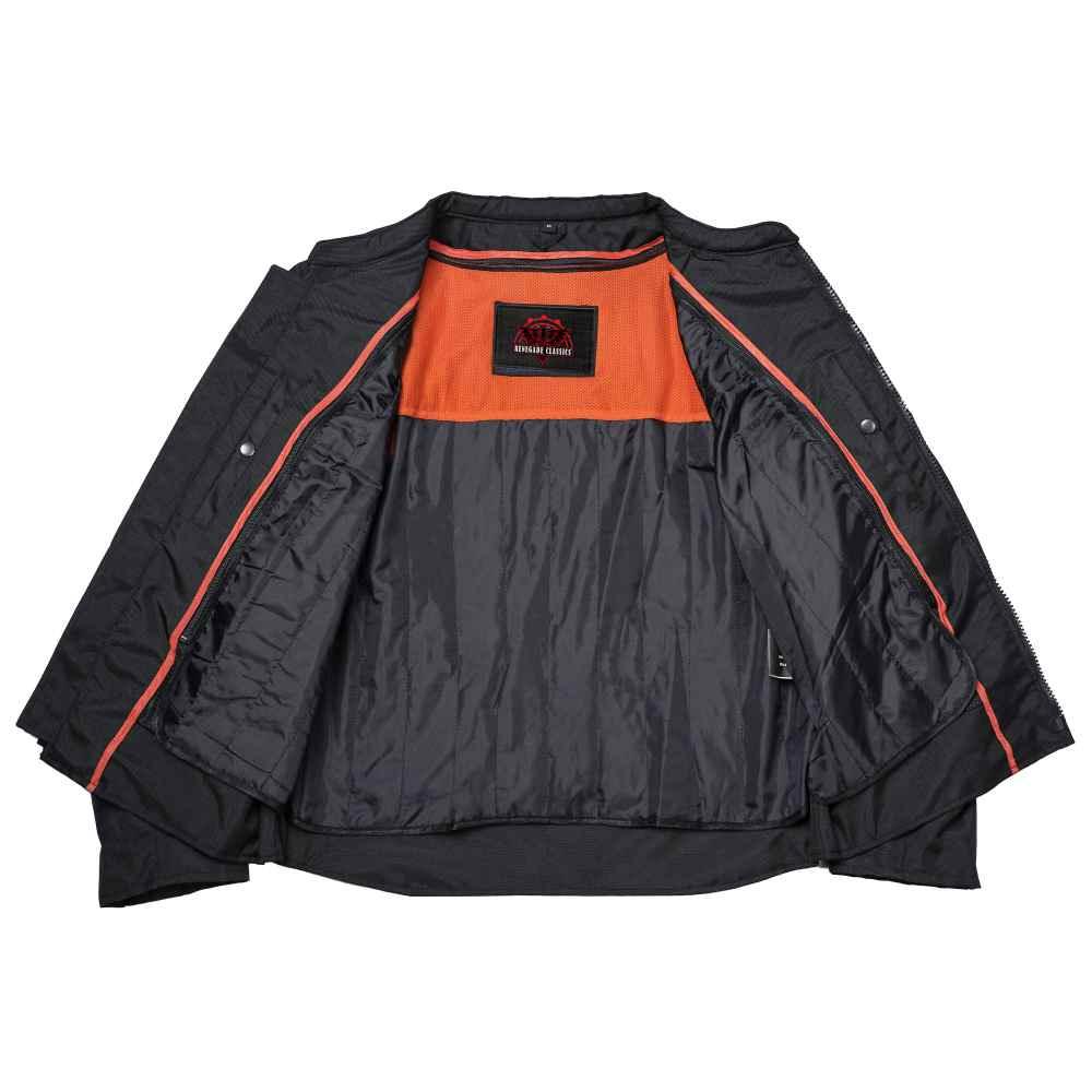 The All-Season Moto Jacket is crafted from durable textile and built to withstand any weather with its water-resistant design. Its mandarin collar and reflective stripes add a bold, sporty edge. Equipped with 4 external and 2 internal pockets, it offers ample storage. Side zippers enhance riding comfort, while multiple vents on sleeves, front, back, and underarms ensure maximum airflow. The action back with stretch panels and heavy mesh liner provide freedom and ventilation. For colder rides, zip out the insulated full-sleeve liner. Heavy-duty zippers and snaps guarantee lasting performance.