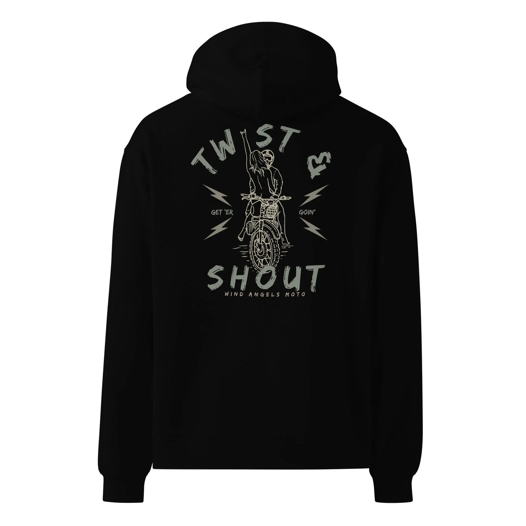 Twist, shout, and let it all hang out in our Twist and Shout hoodie. This hoodie will have you spinning faster than your rear wheel and screaming louder than your exhaust. Gear up and get ready for a wild ride that'll leave you breathless and begging for more.