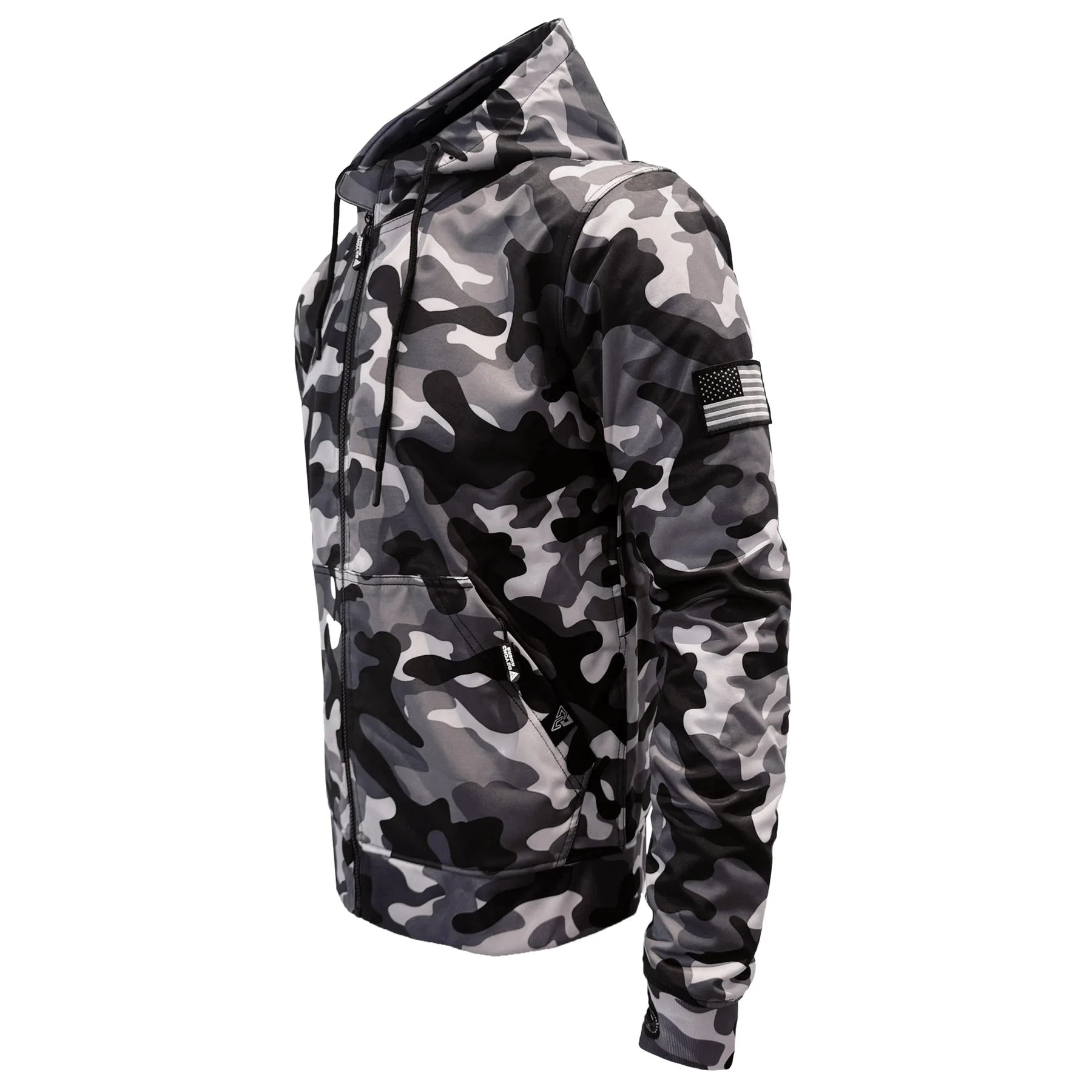 Protective SoftShell Unisex Camouflage Hoodie - "Grey Boomer" with Pads