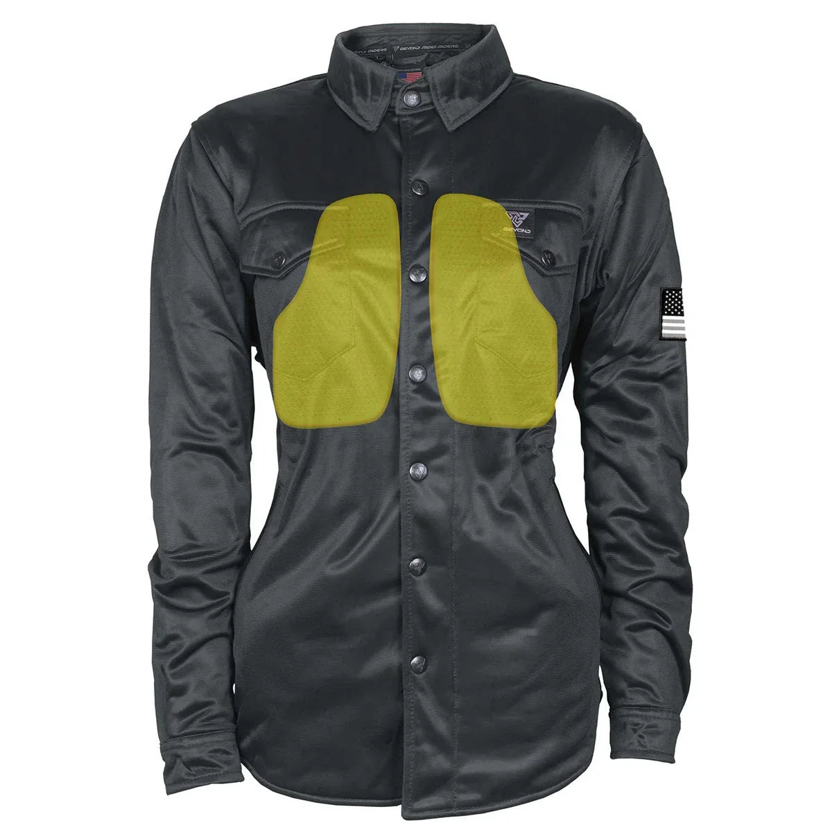 Beyond Riders Black Solid Ultra Protective Shirts with a full set of Level 1 pads and additional chest pads included, made from breathable fabric, designed for female riders! This stylish and comfortable lightweight button-up shirt provides riders with essential protection. The revolutionary design allows for maximum airflow that keeps your body cool even during the most challenging rides.