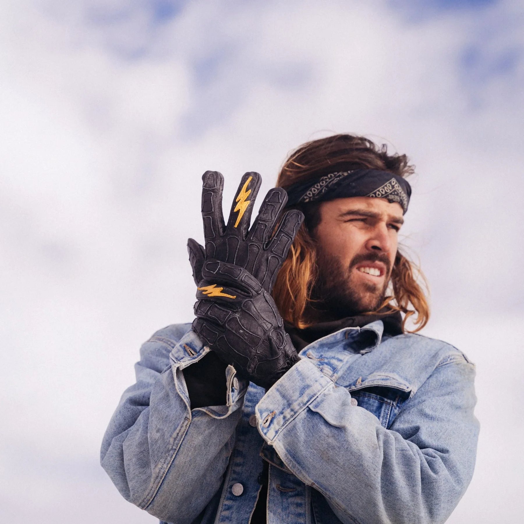 Astrapí (Lightning) Skeleton Leather Motorcycle Glove - Black on Black