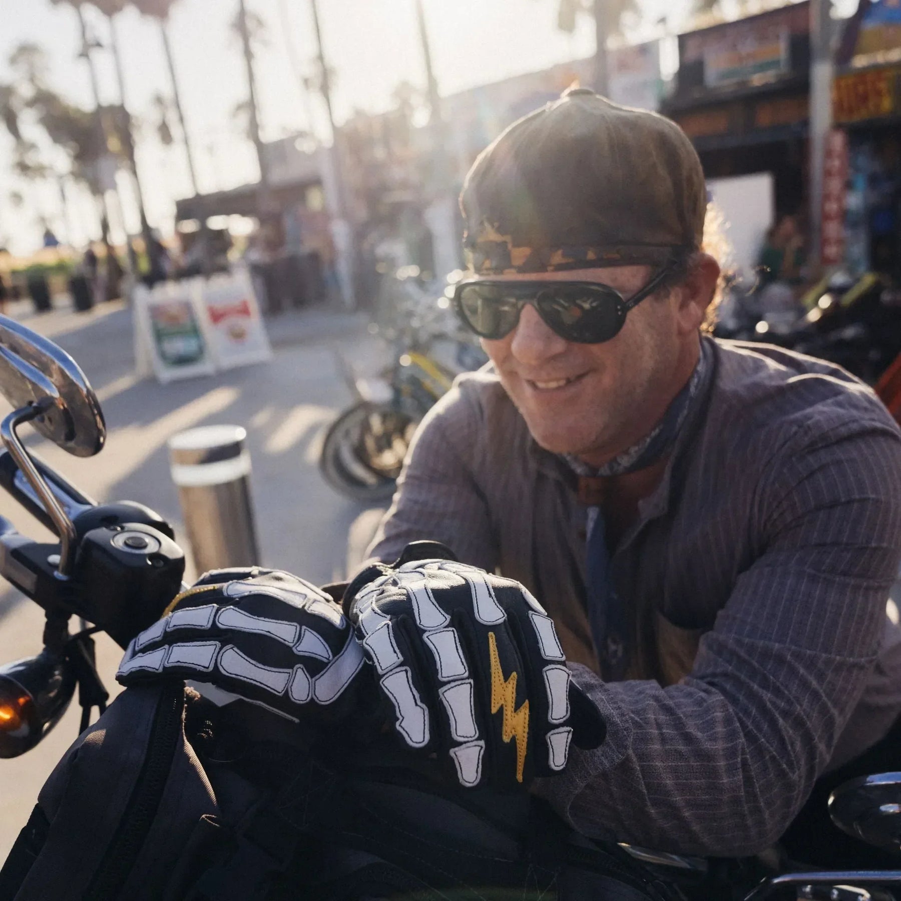 Astrapí (Lightning) Skeleton Leather Motorcycle Glove - Black-White