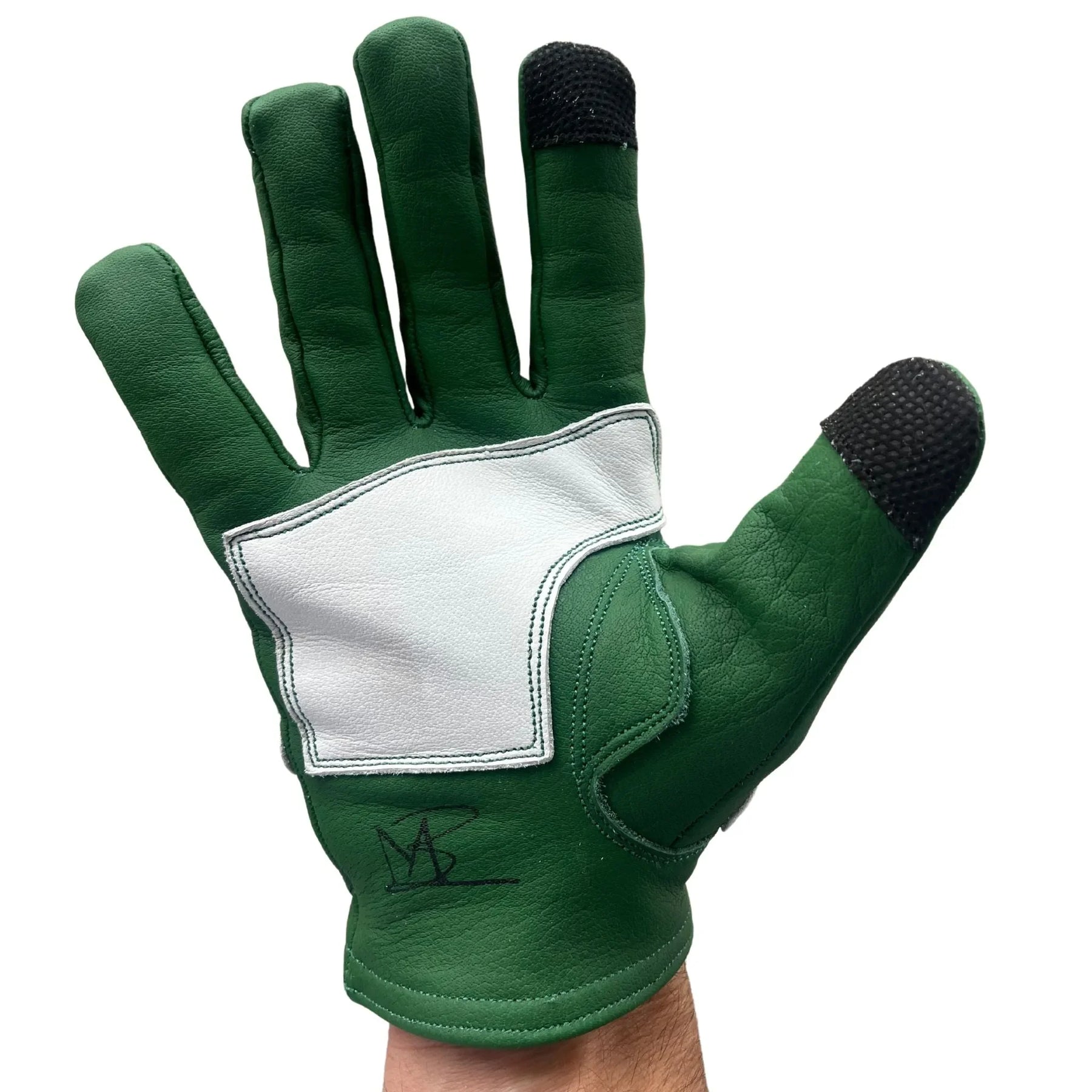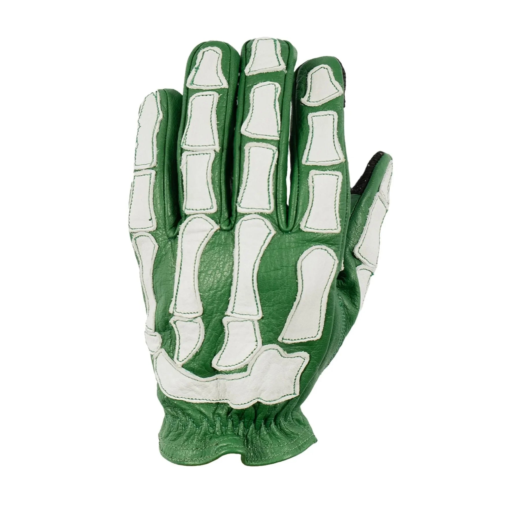 Leather Motorcycle Glove - Buffalo Hide - Skeleton Design - Green & White