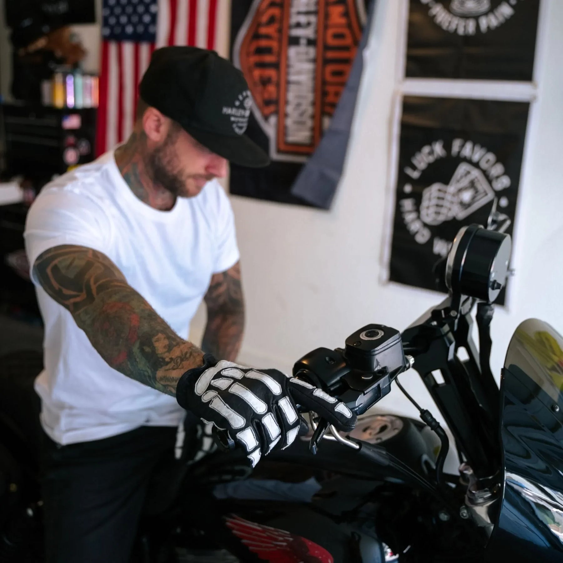 Black & White Water Buffalo Skelton Motorcycle Glove