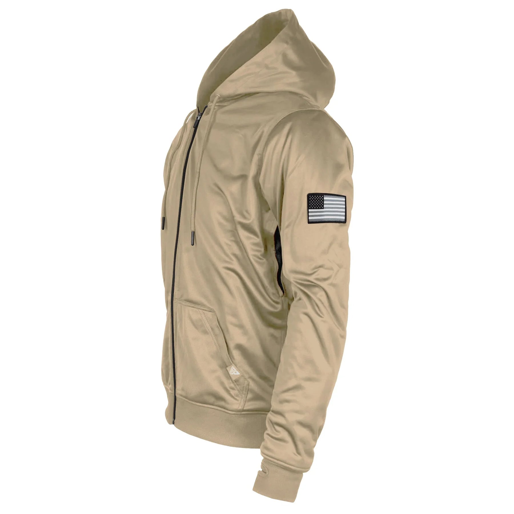 • Reinforced Inner Lining with DuPont™ Kevlar®: The entire hoodie is lined with DuPont™ Kevlar® fiber, providing superior abrasion resistance and enhancing the protective qualities of the garment.