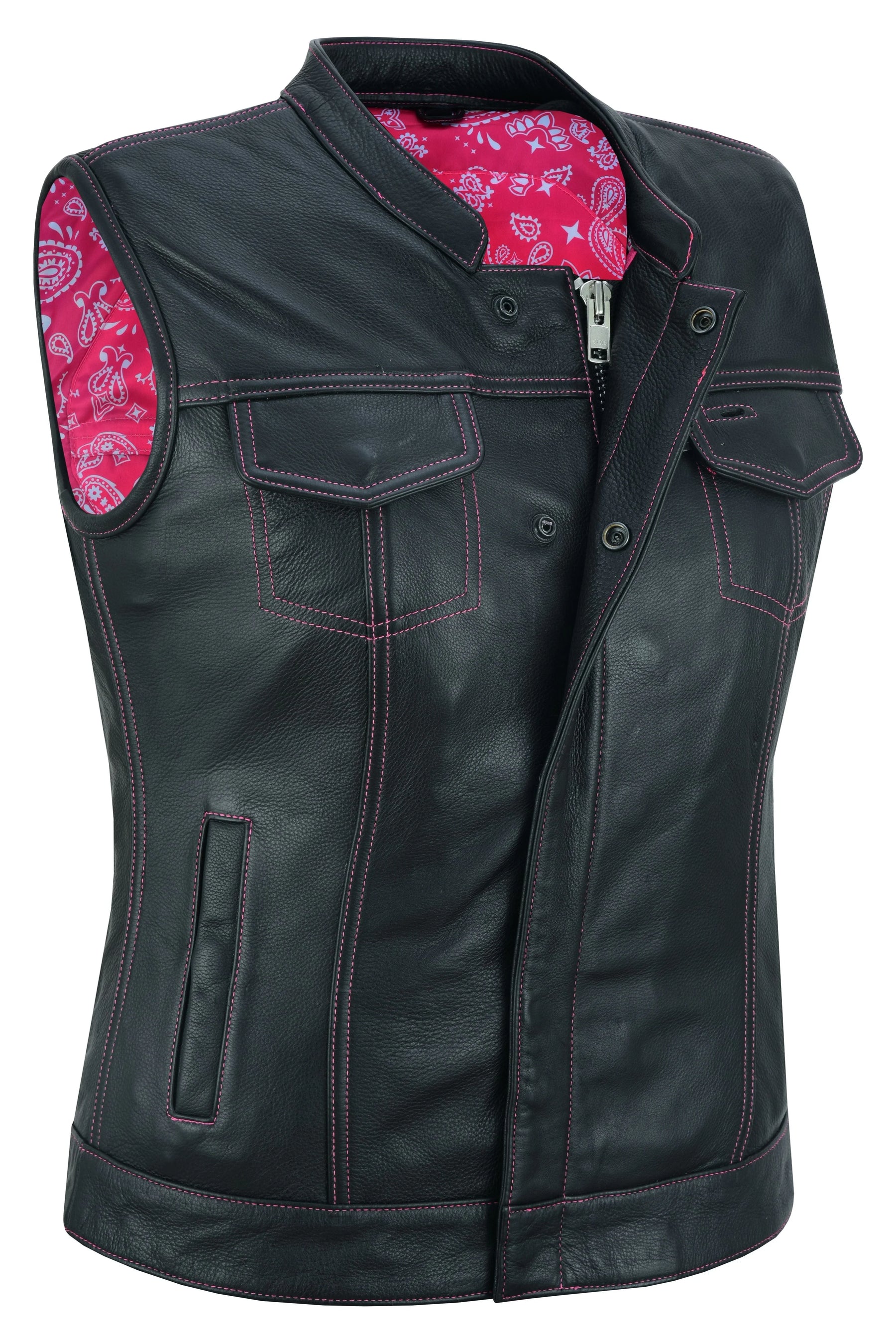 • White paisley on pink background inner lining.