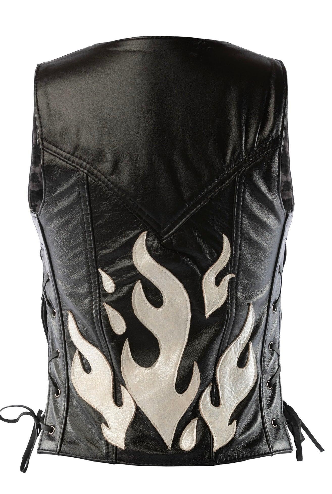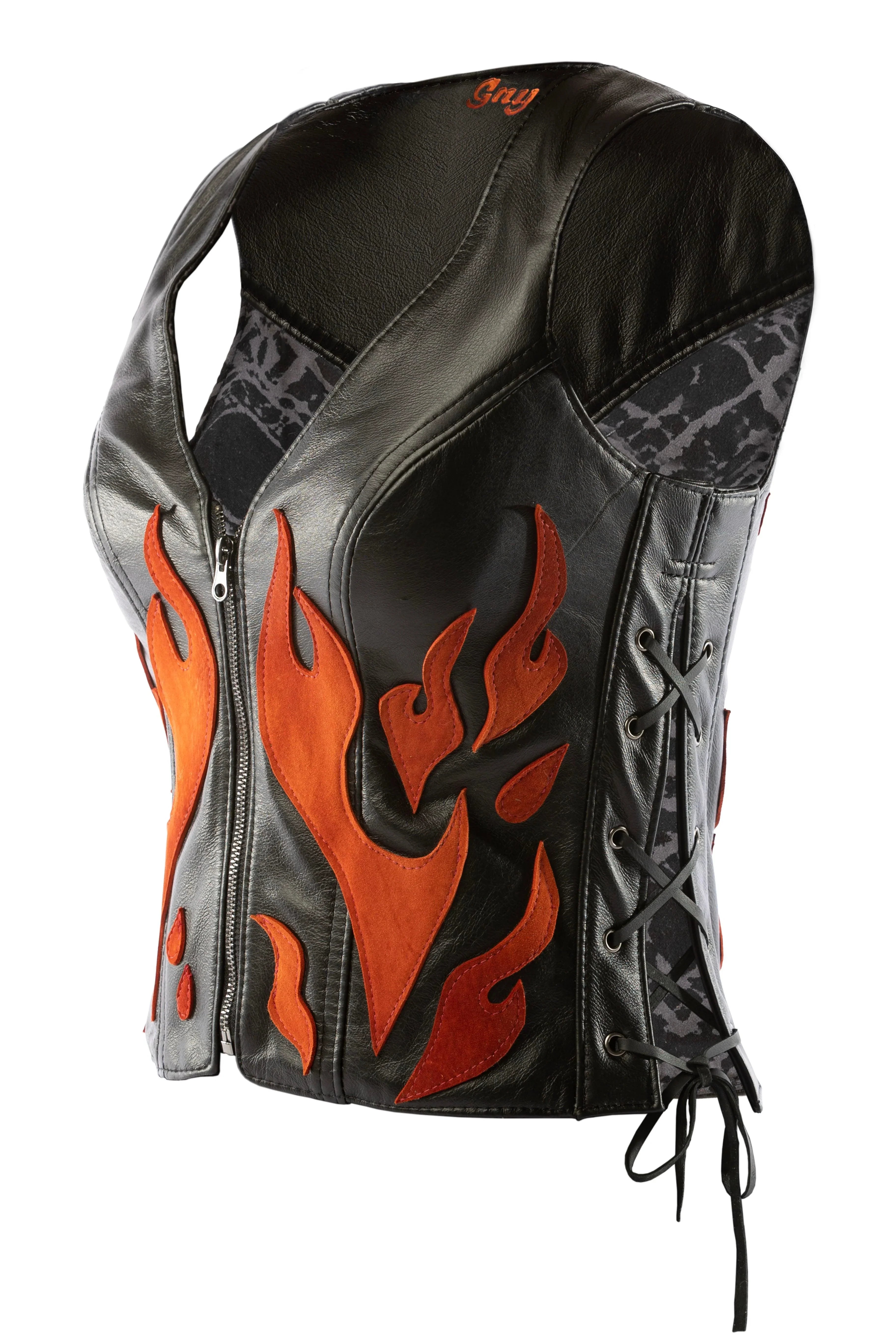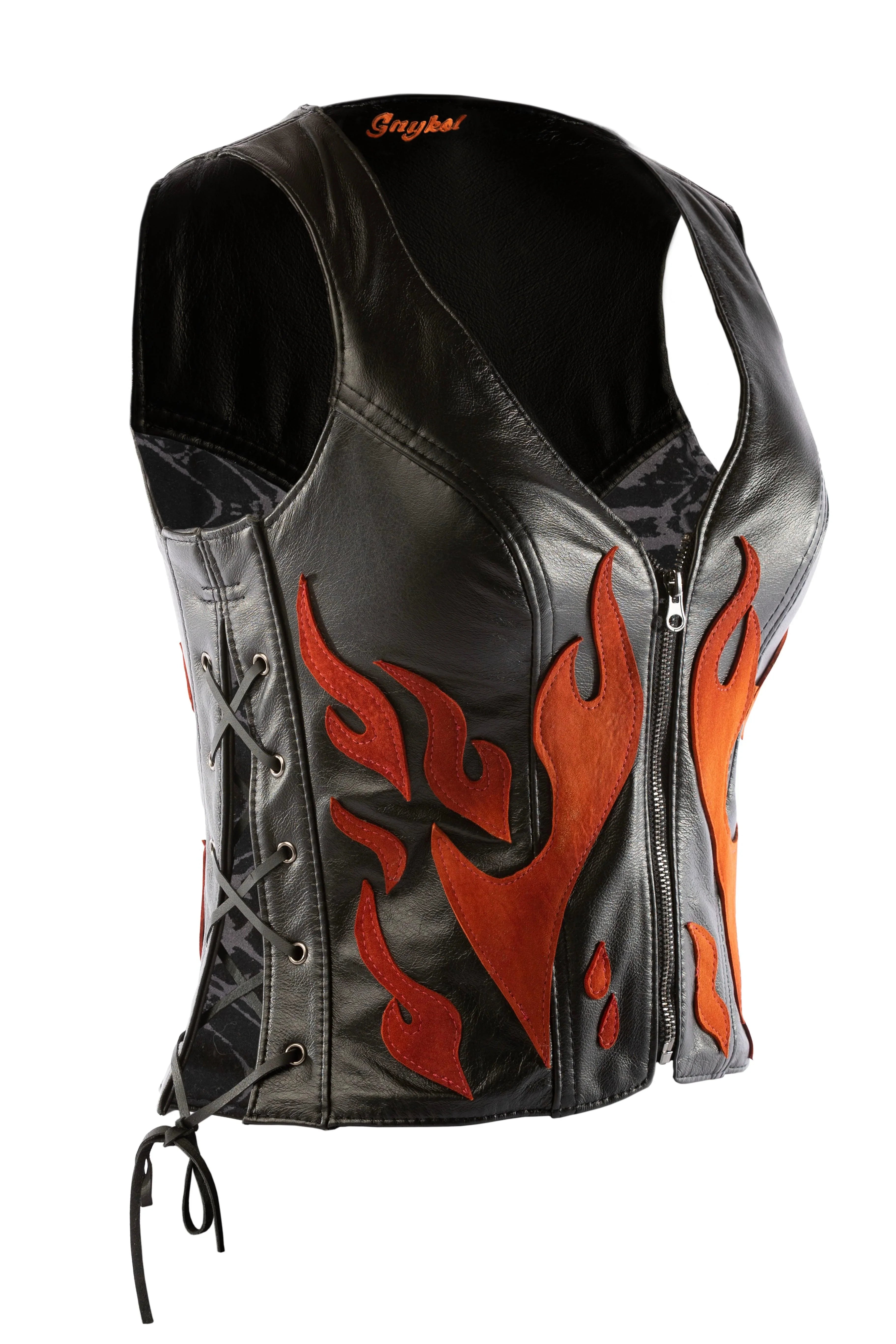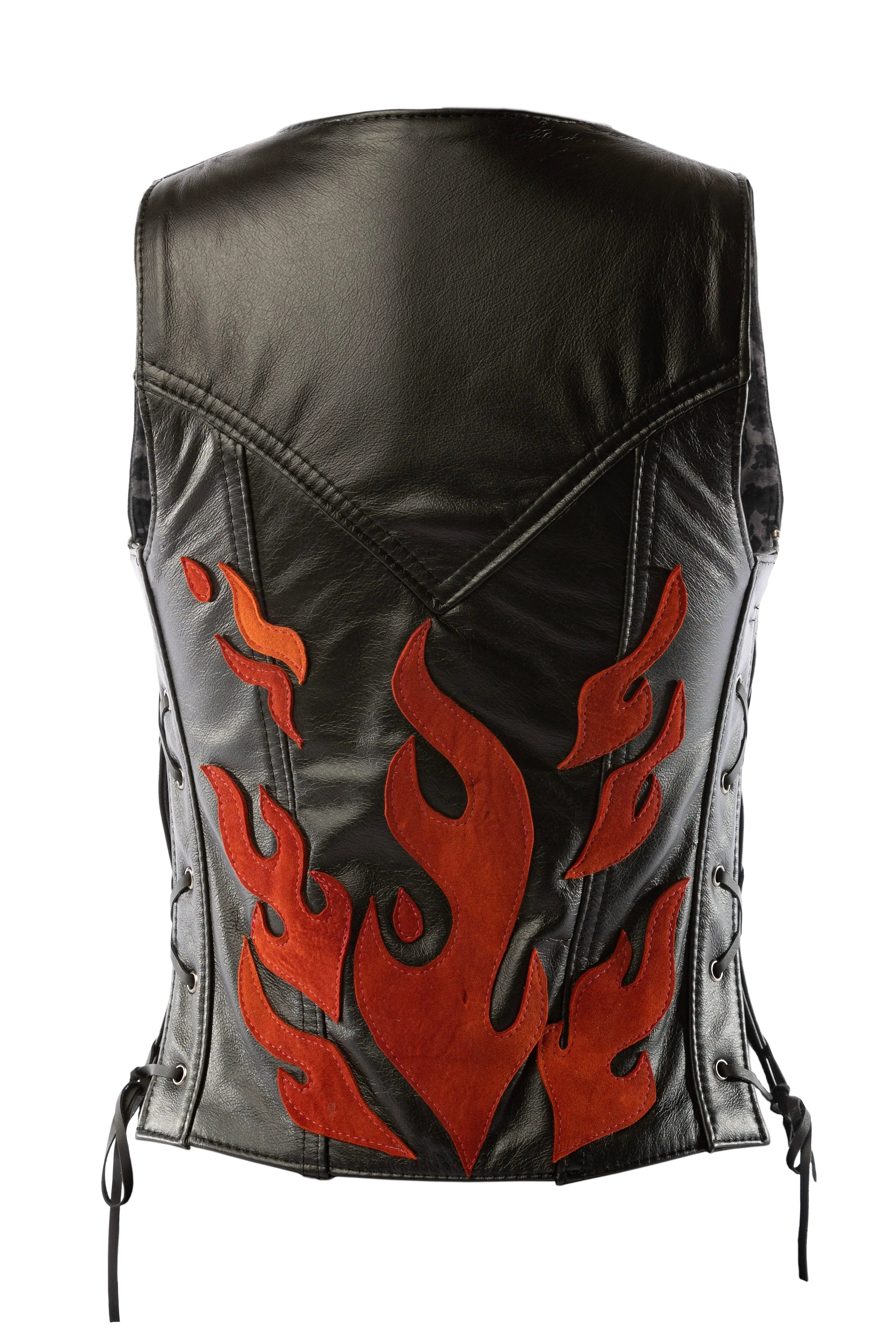 • Detailed with hand-cut leather flames in five color options