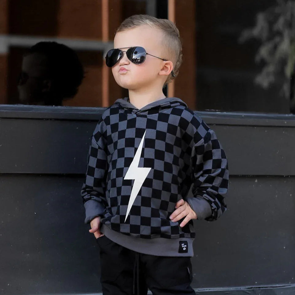 Meet the sustainably made bamboo hoodie that's as cozy as your favorite blanket—if only it came in adult sizes! Featuring three of our signature LRT sparks in a stylish monochrome design, this piece is sure to be your Little Rad Thing’s new favorite layer.