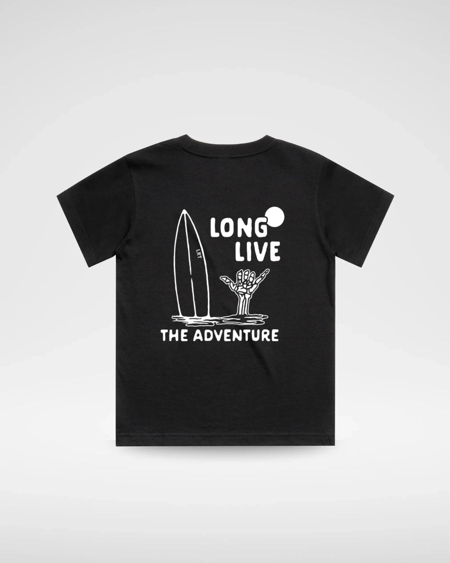 100% ORGANIC COTTON LONG LIVE THE ADVENTURE TEE - BLACK