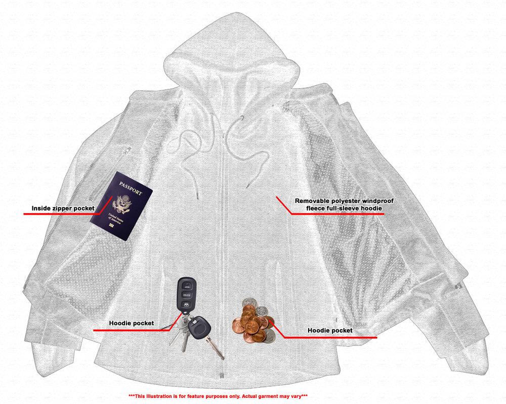 Removable polyester windproof fleece full-sleeve hoodie for extra warmth can be worn separately.