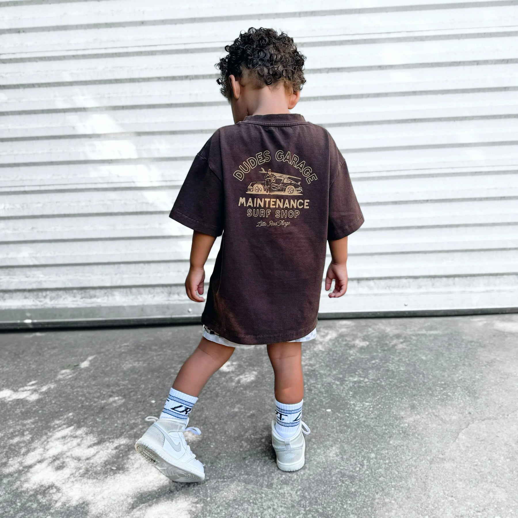 Transform your little dude's style with our Garage vintage tee. This premium brown t-shirt features a striking gold automotive graphic that captures retro garage vibes. Crafted from sustainable cotton for ultimate softness and durability. Premium Kids T-Shirt Features:
